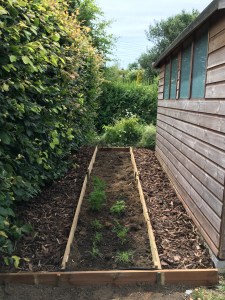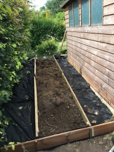 Where the stack had been, I was left with an area of unsightly bare soil. Why not use it to create a small bed for over-flow plants, experiments and sowing biennials?